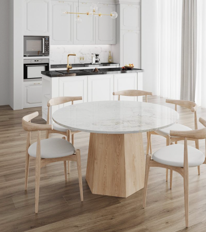 Due to the nature of the materials used, marble and wood may present variations in tone and veins, giving each piece a unique and exclusive character.